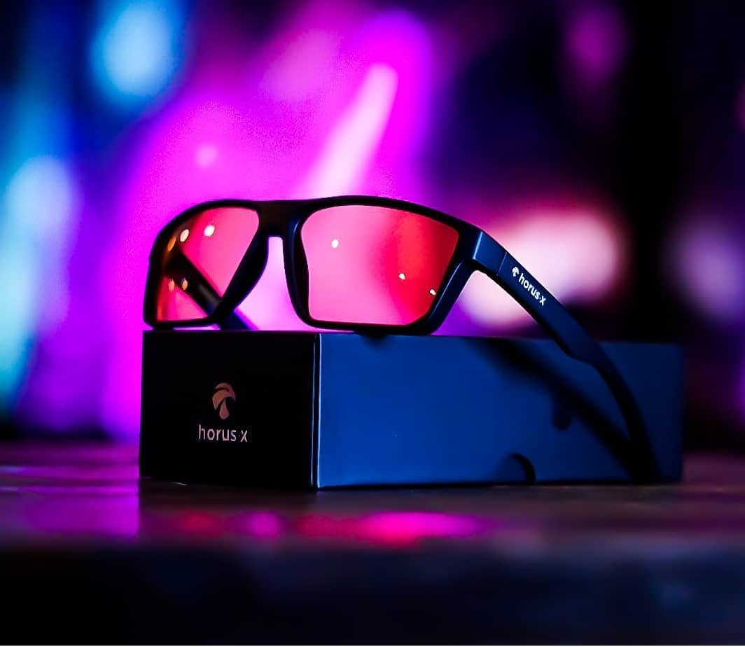 Wir haben sehr hart daran gearbeitet, unsere Horus X Gaming-Brille mit den besten Materialien auszustatten. Bügel und Gläser sind aus Polycarbonat, einem ultraleichten und weichen Material. Unübertroffener Komfort, optimiert für das Tragen von Headsets.