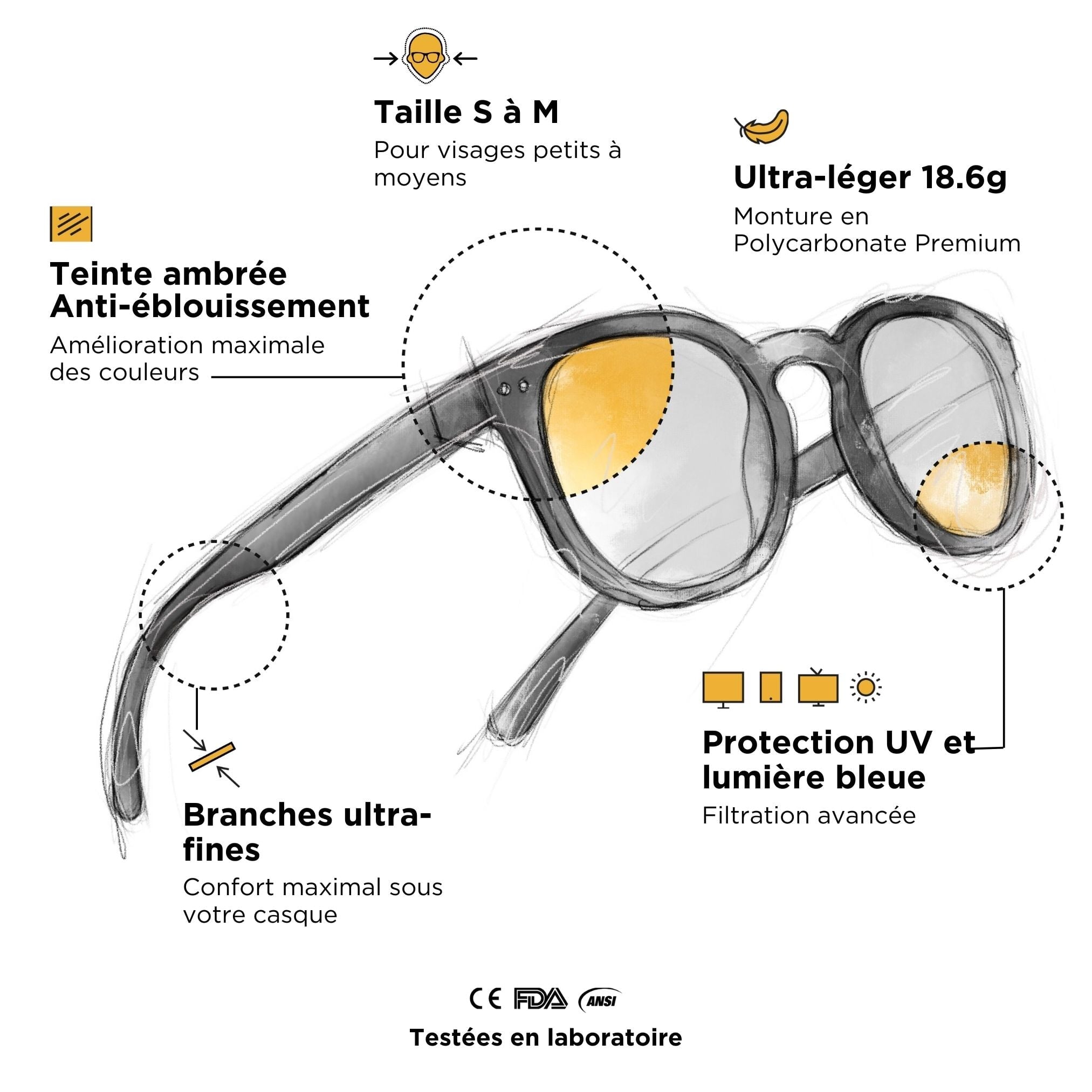 Widerstandsfähige und langlebige Anti-Blaulicht-Brille aus Polycarbonat (Material für den ballistischen Schutz) + verstärkte Metallscharniere. Wir vertrauen unseren Brillen so sehr, dass sie eine lebenslange Garantie haben . Das ist richtig!
