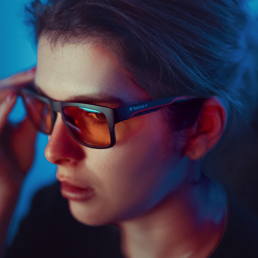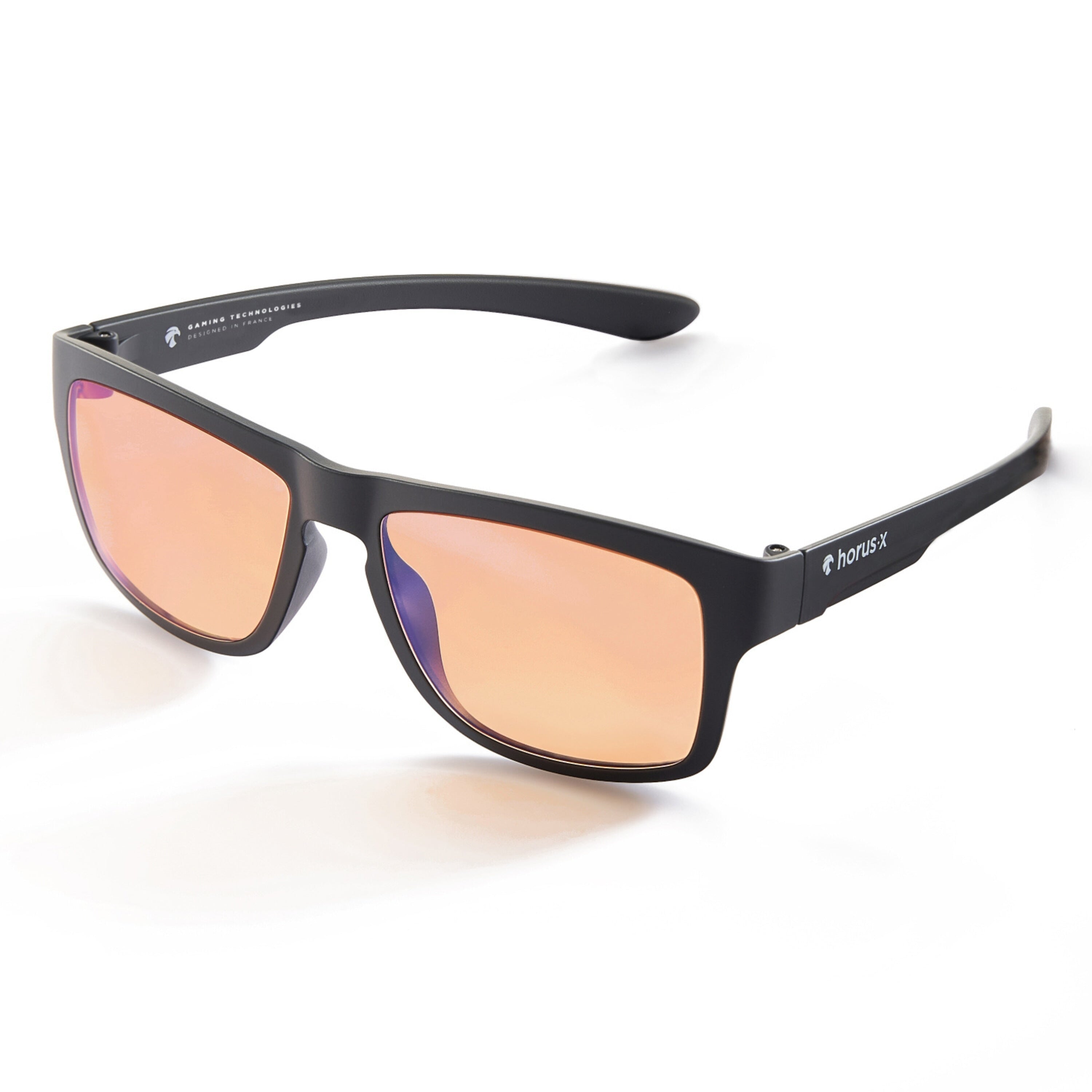 Wir haben sehr hart daran gearbeitet, unsere Horus X Hope Gaming-Brille mit den besten Materialien auszustatten. Bügel und Gläser aus Polycarbonat, ultraleichtes Material (20 g!), weich und hypoallergen. Unvergleichlicher Komfort für stundenlanges Gaming, optimiert für das Tragen von Headsets.